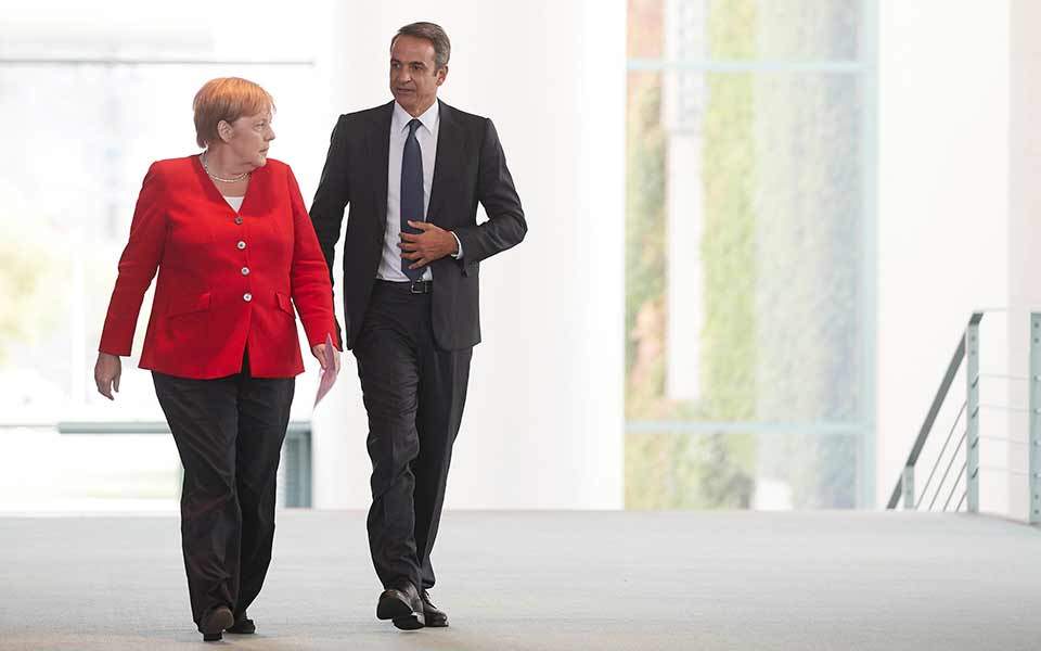 Η γερμανική προεδρία, όπως έχει καταστήσει σαφές και η Αγκελα Μέρκελ με τις πρωτοβουλίες της, επιθυμεί να λειτουργήσει ως καταλύτης προκειμένου Ελλάδα και Τουρκία να καθίσουν στο ίδιο τραπέζι. Στη φωτ. με τον πρωθυπουργό Κυριάκο Μητσοτάκη σε παλαιότερη συνάντησή τους. Φωτ. ΑΠΕ-ΜΠΕ / ΓΡΑΦΕΙΟ ΤΥΠΟΥ ΠΡΩΘΥΠΟΥΡΓΟΥ / ΔΗΜΗΤΡΗΣ ΠΑΠΑΜΗΤΣΟΣ